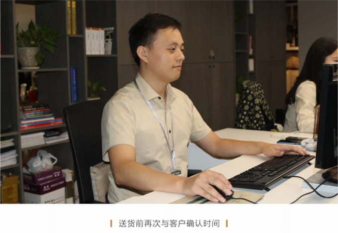 送貨前一日,由配送安排人員再次與客戶確認(rèn)客戶信息,配送時間、地點(diǎn)無誤后,安排次日的配送及安裝工作;