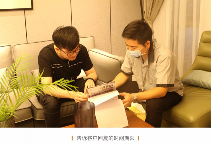 上門現(xiàn)場查看情況后,確定是補(bǔ)件或維修或返廠,并告知客戶大概需要多久時間能夠解決完問題并真誠地表示歉意。